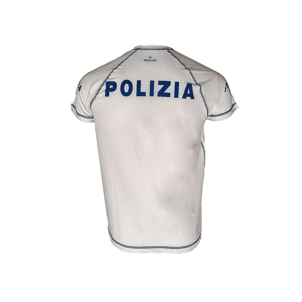 Maglietta a maniche corte bianca bielastica con logo "Polizia" stampa a sublimazione sul retro.