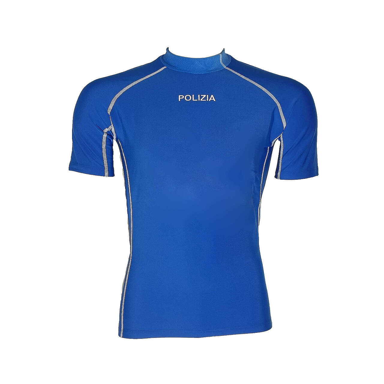 Pullover a manica corta in lycra garzata pesante elasticizzata, con stampa "Polizia" sopra il torace.