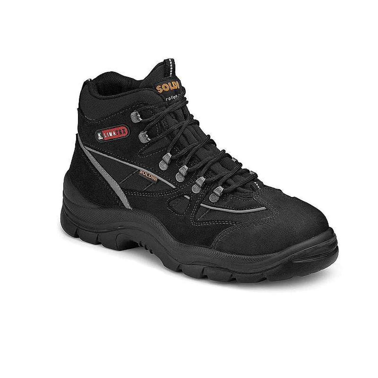 Alta visibilita', morbida e leggera, con tomaia in pelle scamosciata colore nero, idrorepellente con inserti in cordura nera ad alta resistenza allo strappo. Puntale antischiacciamento resistente a 200 J e lamina antiperforazione in materiale composito. Plantare anatomico estraibile Light. Fodera in tessuto Klimatex, impermeabile e traspirante con cuciture termosaldate. Suola antistatica, antiscivolo, anticalore.
