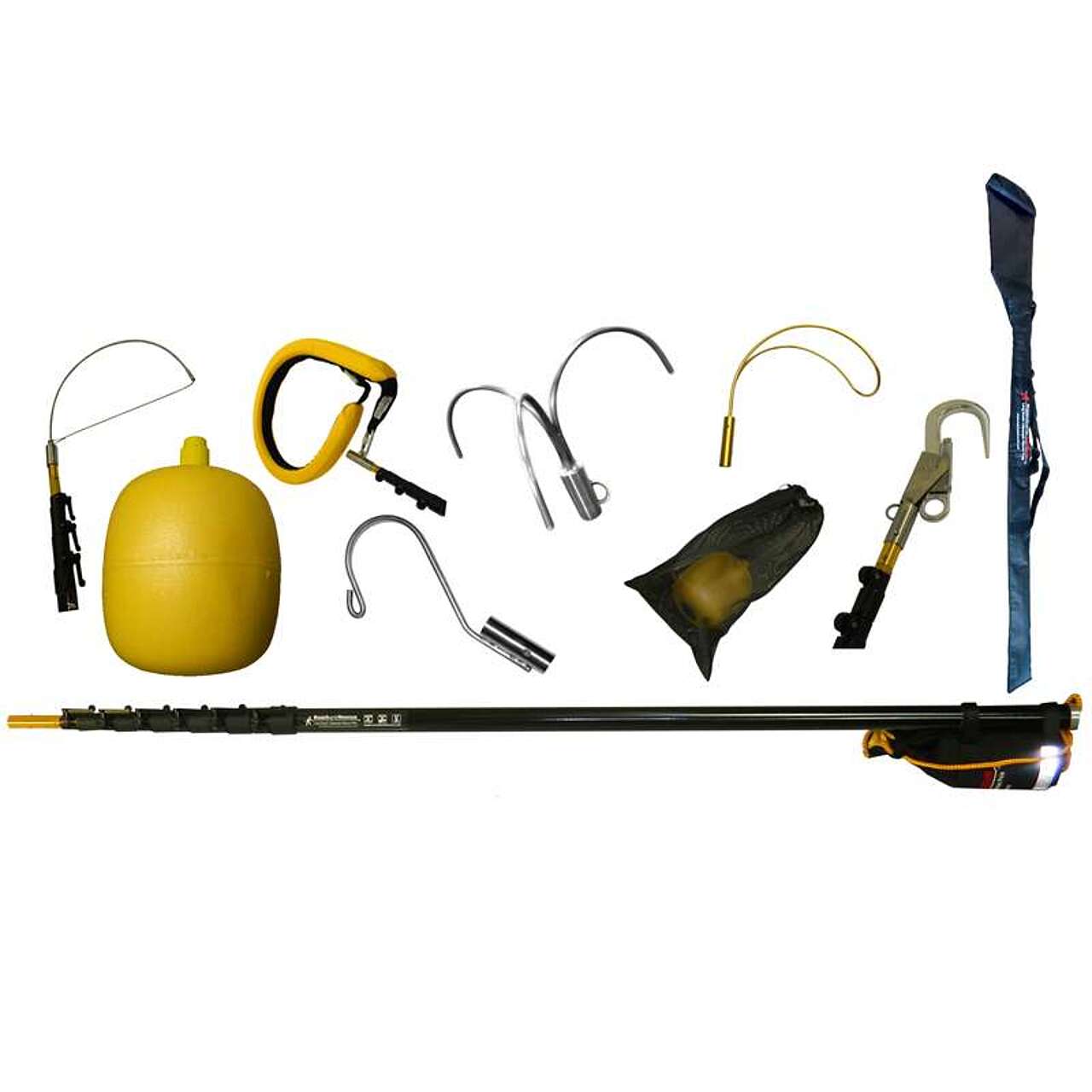 IL KIT COMPRENDE: Asta ultralight 13 mt, Boa di galleggiamento, Flotation Collar, laccio a molla, gancio in acciaio, connettore Carrago, borsa a rete da trasporto, custodia per asta.
