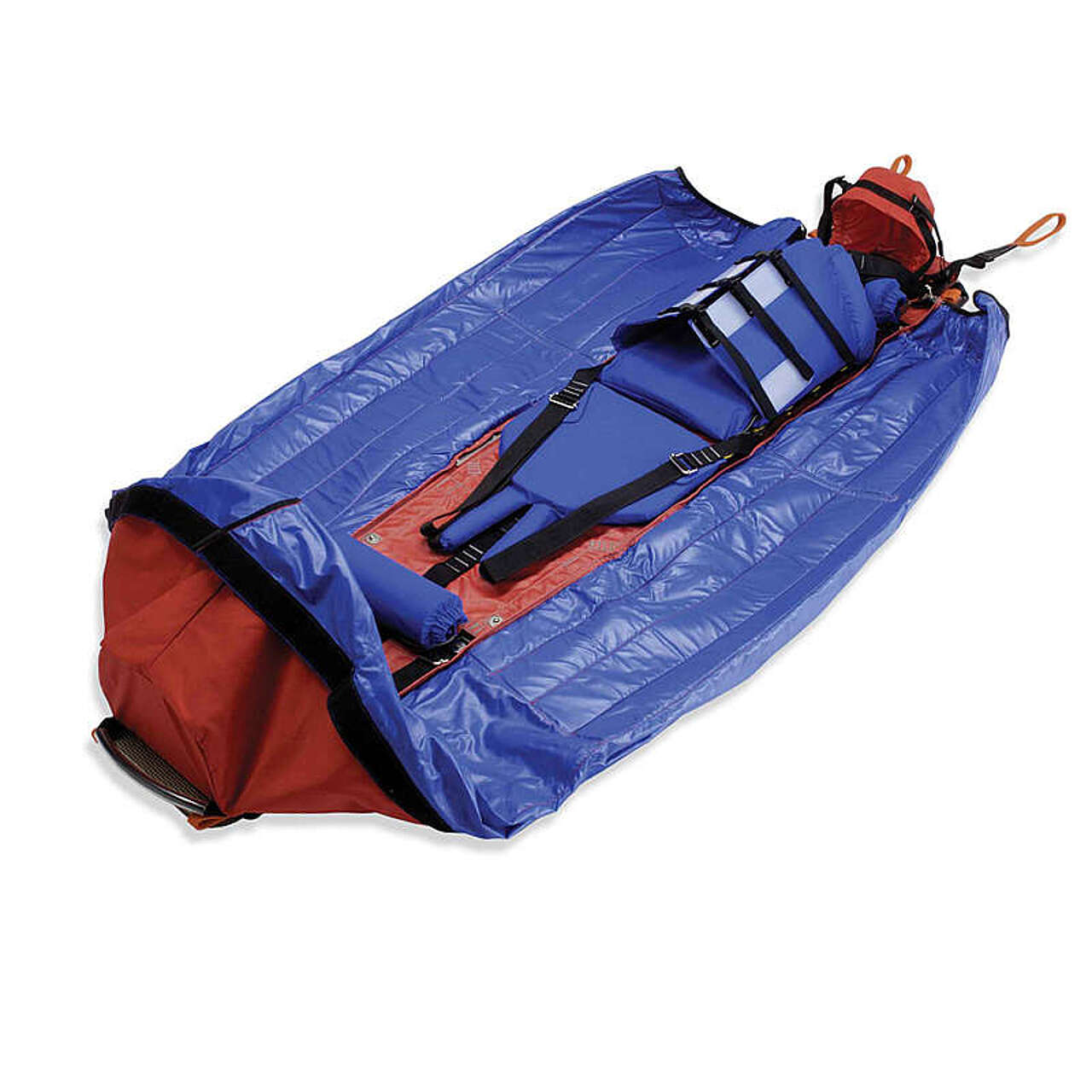 Barella per speleologia con pianale di irrigidimento in Carbonio/Kevlar/Bakelite. Imbragatura interna estremamente completa e ricca di imbottiture posizionabili e lavabili. Corredata da cinghiaggi che consentono il sollevamento in ogni condizione. E' possibile la variazione di assetto (TRIM) durante le manovre.
