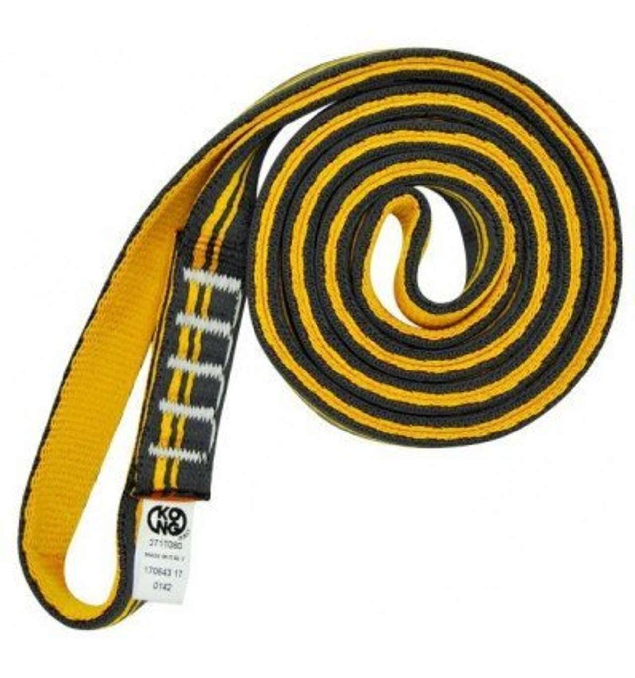 Anello di fettuccia in poliammide. Per realizzare una sosta o un ancoraggio, o prolungare un punto di ancoraggio. Lunghezza della fettuccia: 80cmLarghezza della fettuccia: 15 mmCarico di rottura: 22 kNColore: Nero e Arancione