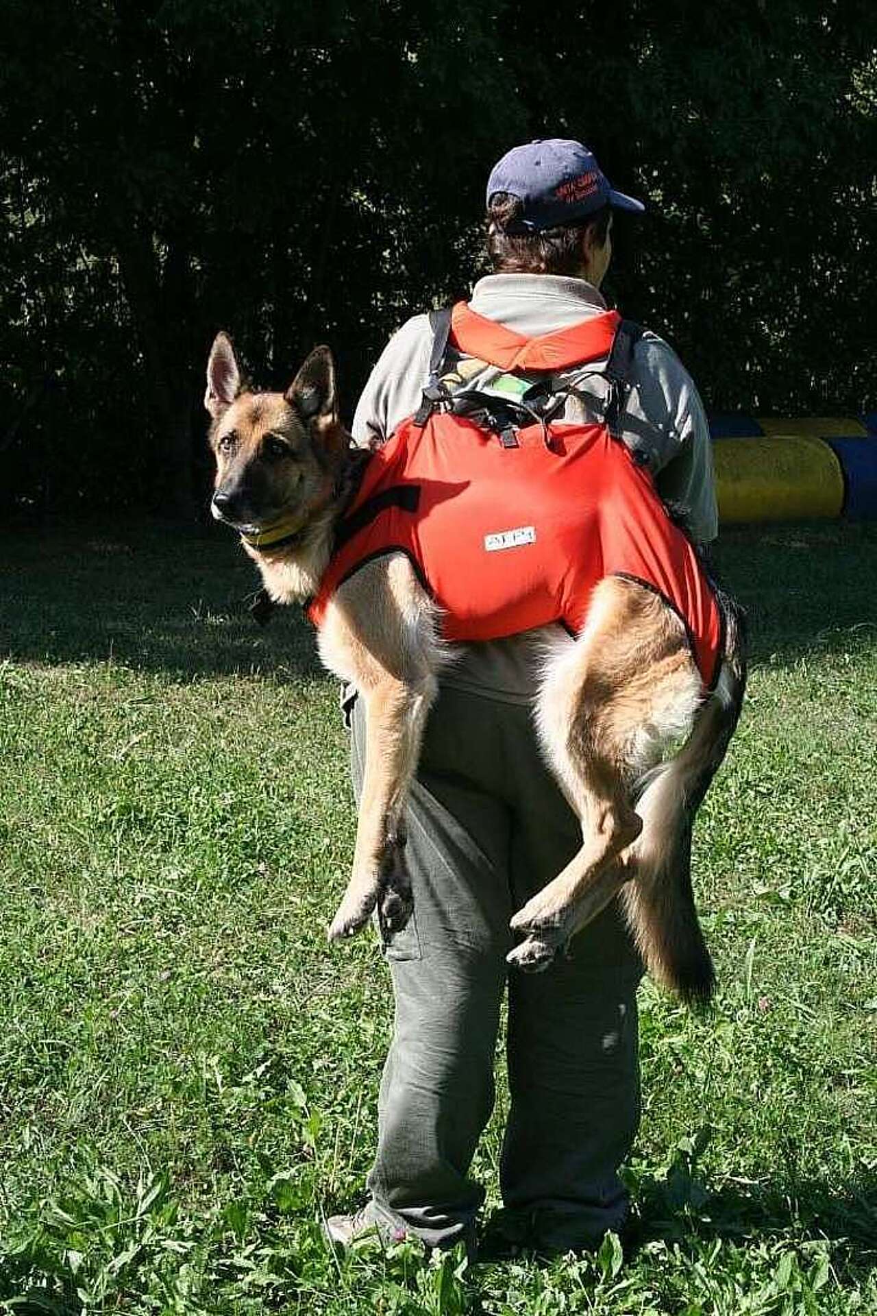 Imbragatura appositamente progettata e realizzata per il trasporto di cani da soccorso o disabili.