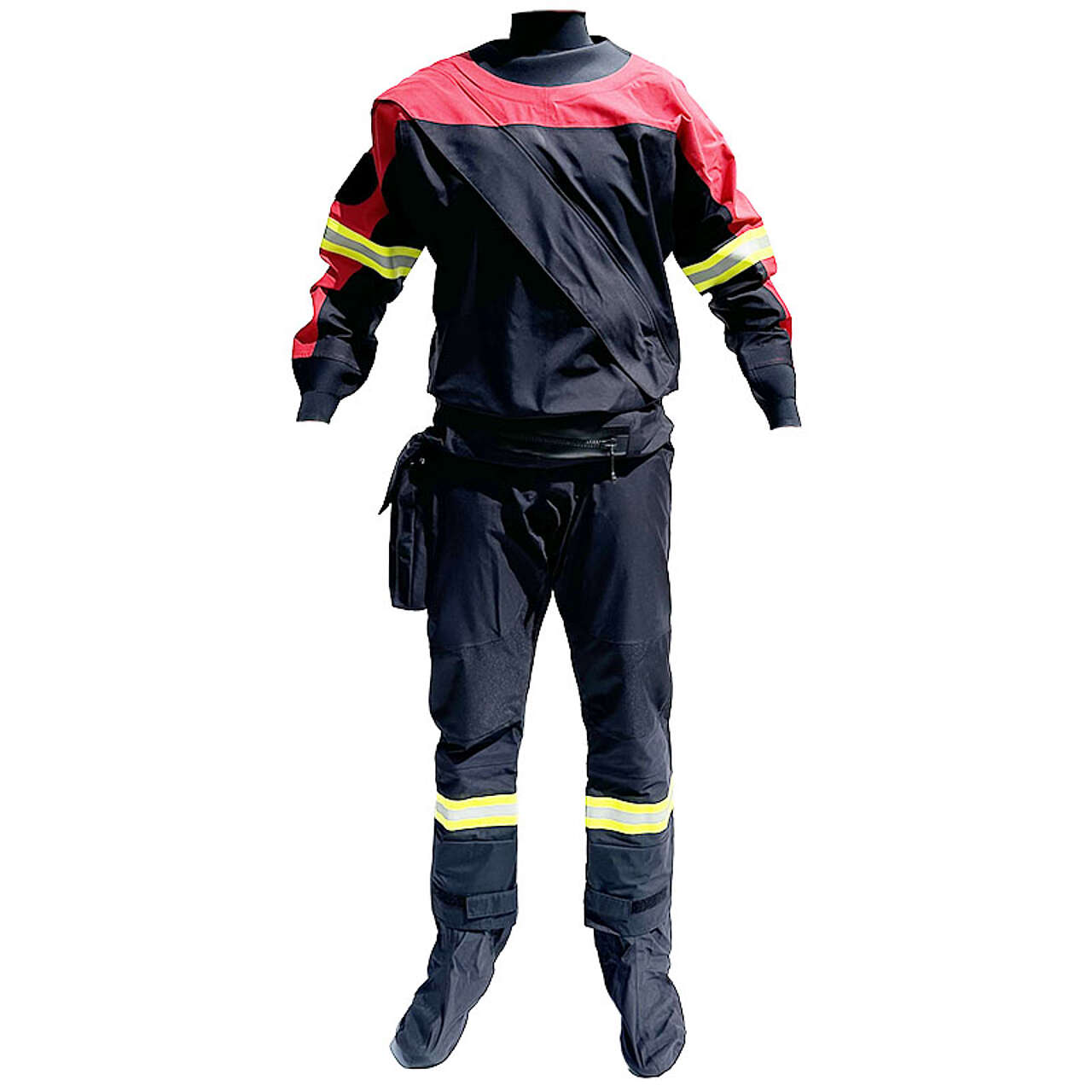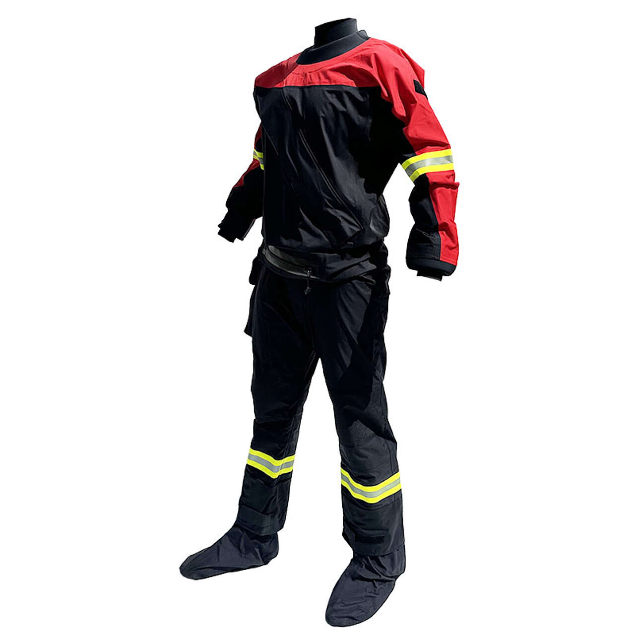 Idrocostume concepito per l'intervento in ambiente acquatico, realizzato in tessuto trilaminato traspirante e certificato come Dispositivo di Protezione Individuale di categoria III.