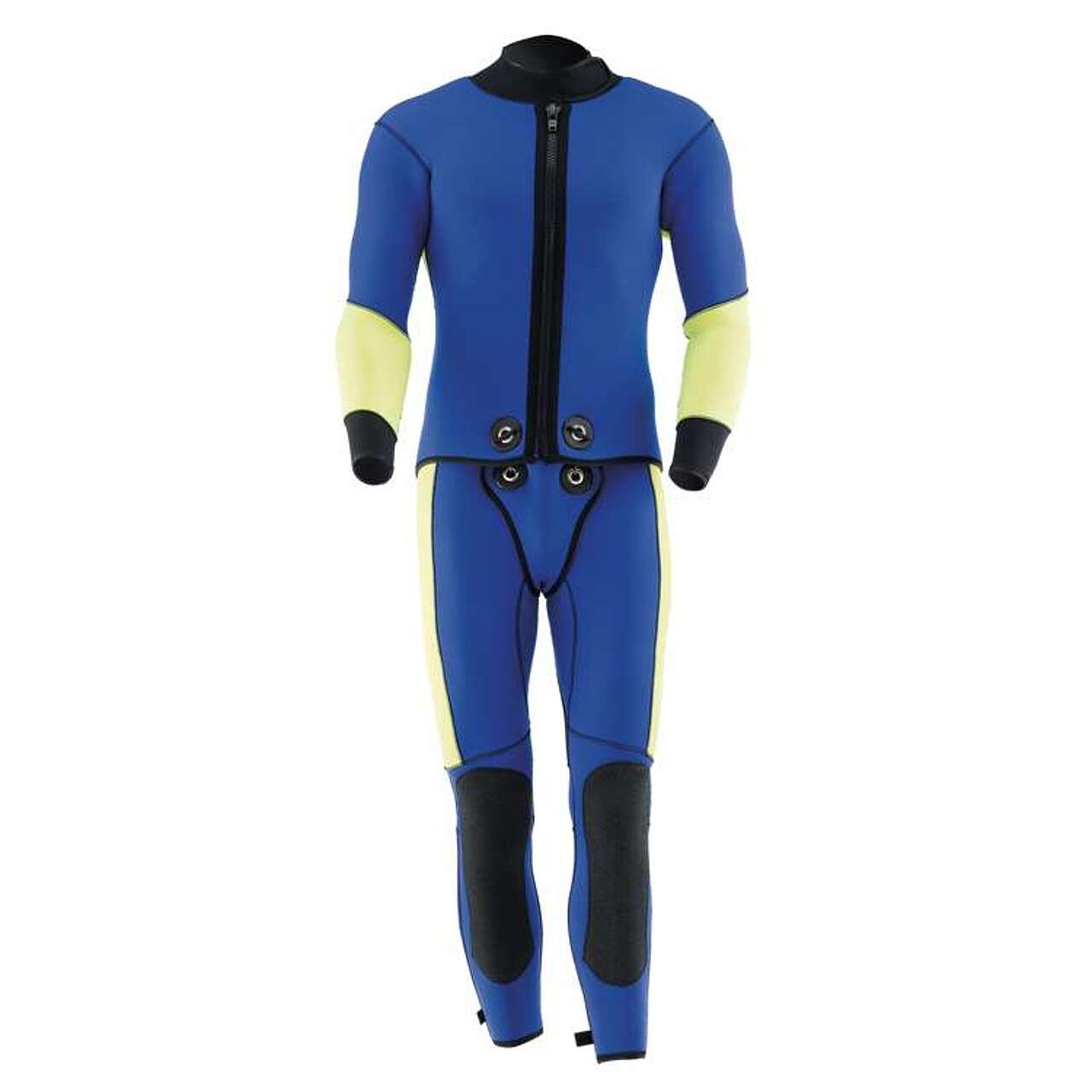 Muta completa 2 pezzi composta dagli articoli MN 5065 e 5047, realizzata in neoprene da 5 mm con fodera esterna e tessuto felpato interno. Il pantalone e' realizzato con la parte alta in neoprene liscio interno e spessore differenziato a 3/5 mm, cerniere alle caviglie rinforzi in KEVLAR su ginocchio e gamba, pannello posteriore con rinforzo in SUPRATEX. La giacca ha spessore 5 mm con neoprene liscio interno sui polsi,rinforzi in melko sui gomiti, cerniera centrale.