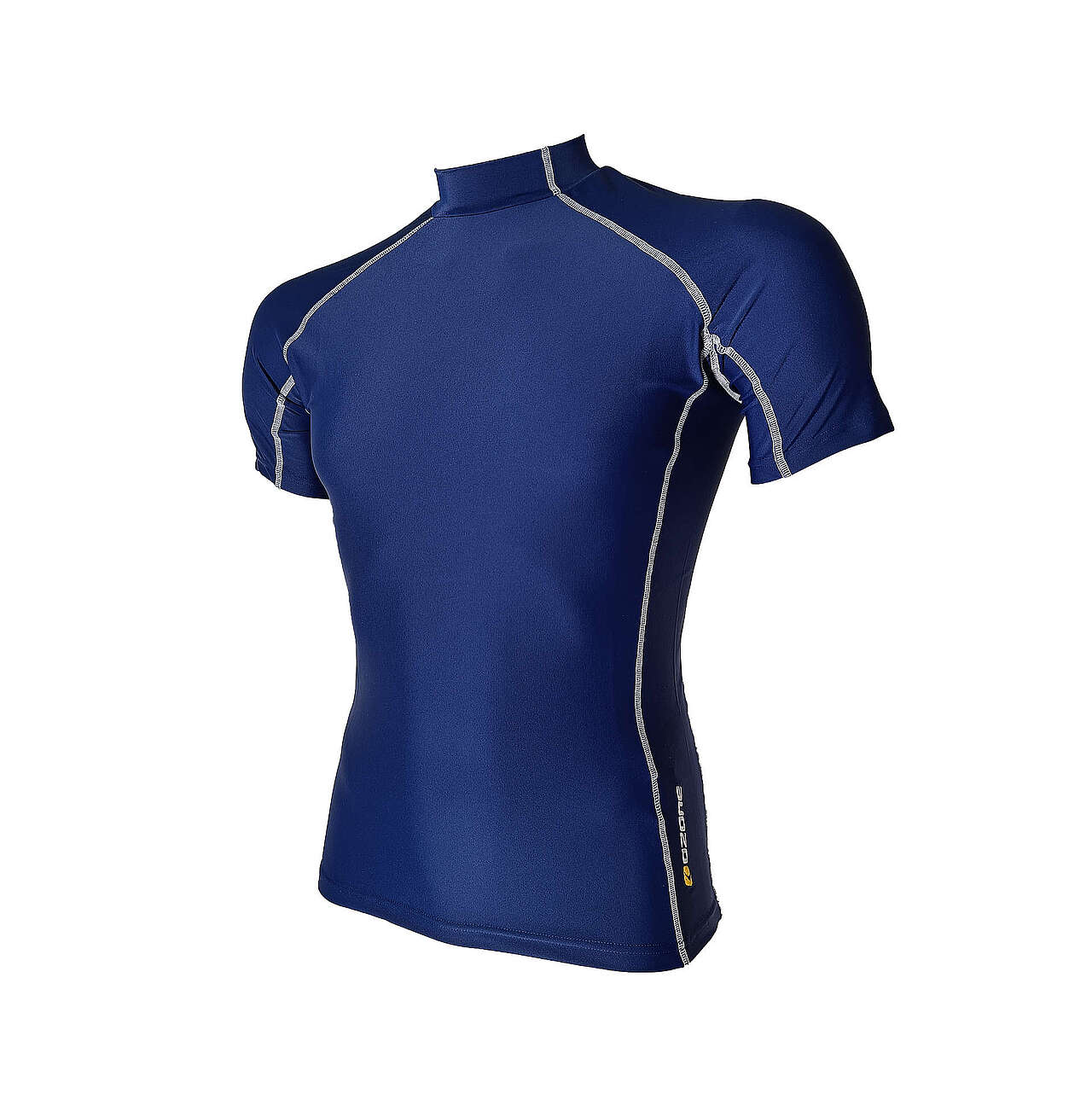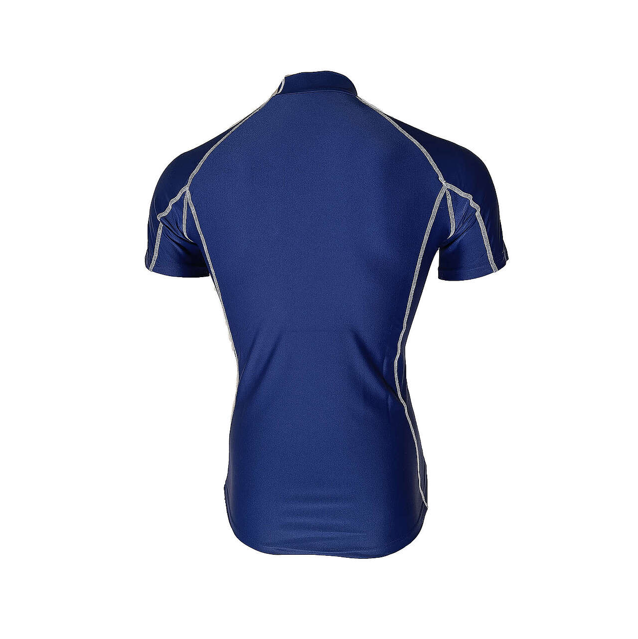 Maglietta a manica corta blu in Lycra leggera bielastica molto aderente. Cucitura esterna piatta per evitare fastidi con la pelle.