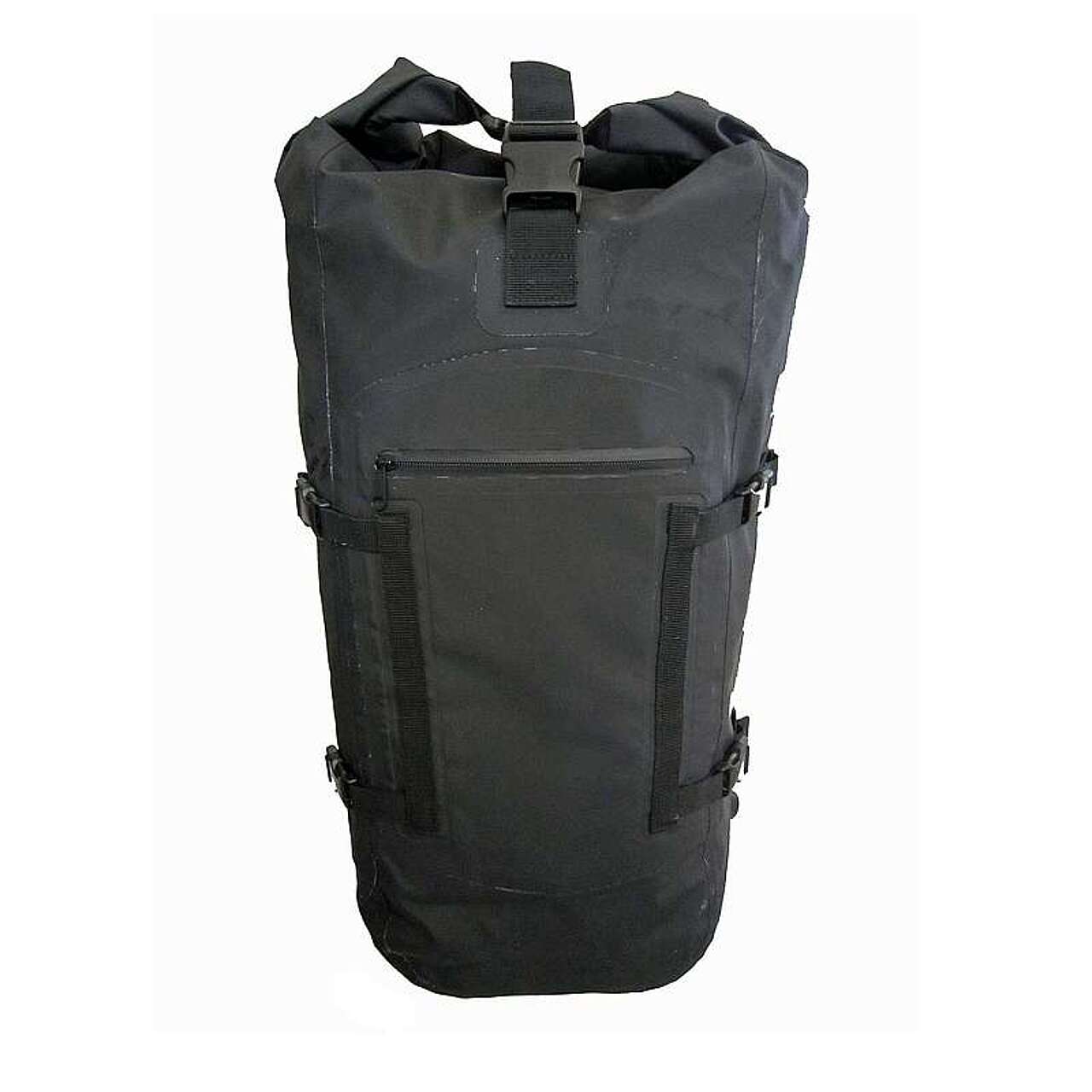 Zaino stagno con chiusura ad avvolgimento, tessuto PVC alta resistenza, dotato di spallacci regolabili e imbottiti, doppia chiusura anteriore in vita, chiusura la petto regolabile in altezza, schienale con imbottitura confort.