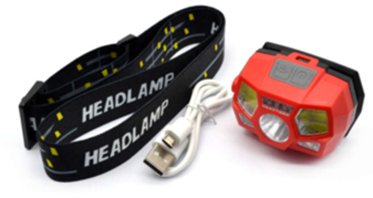 Torcia frontale da 1300 lumen con elastico e placca adesiva.
