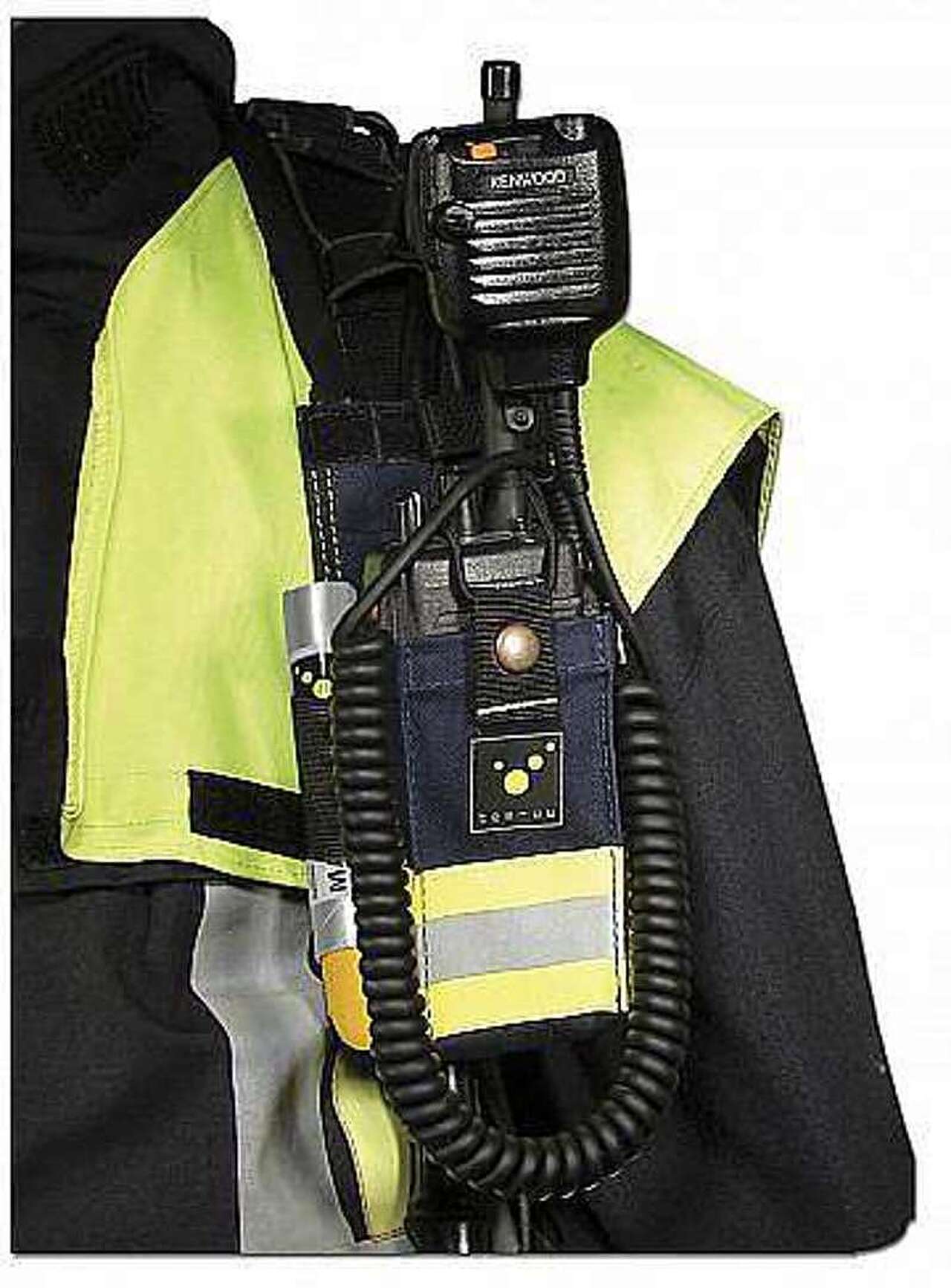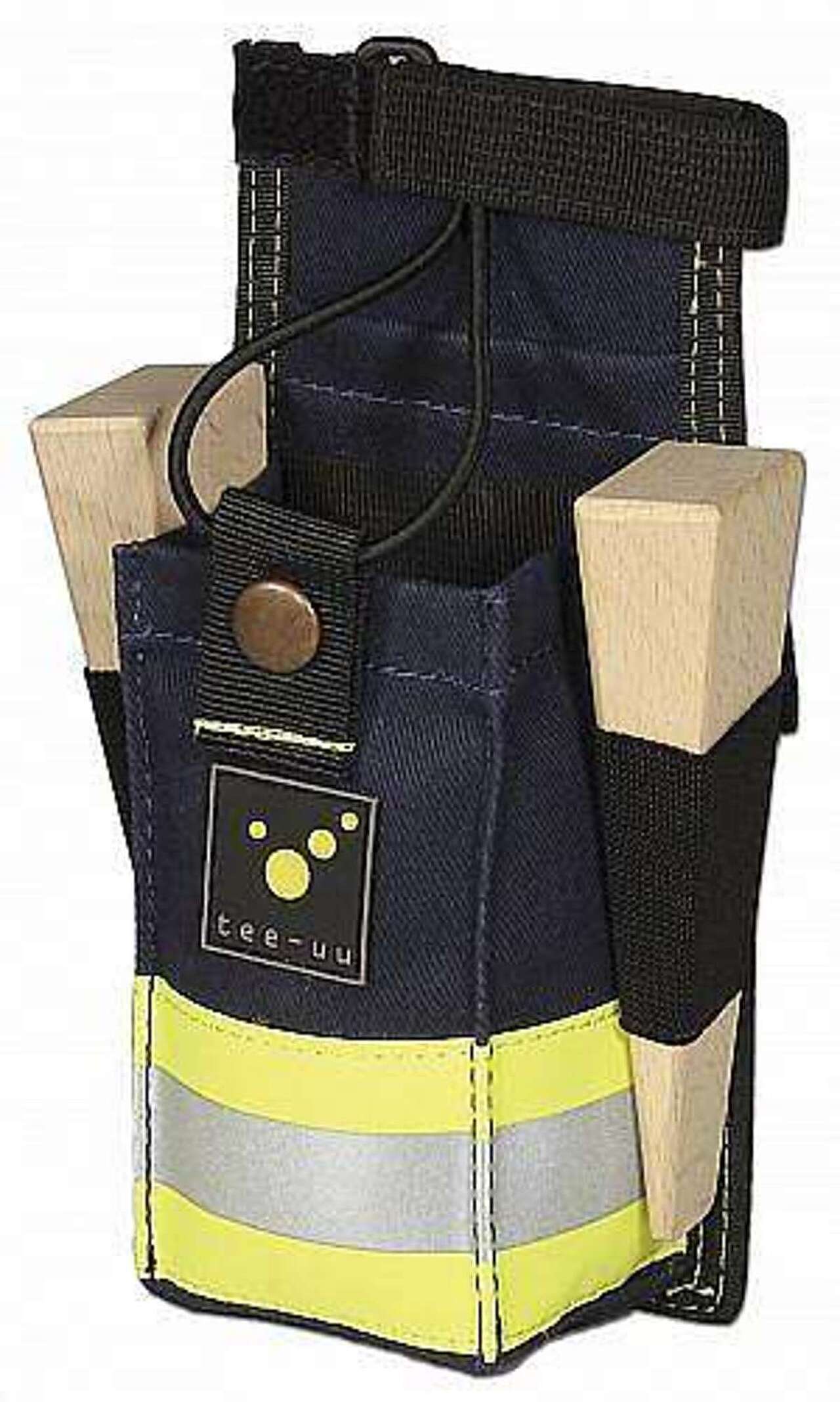 Fondina per trasportare in modo sicuro e garantire un agevole accesso a ricetrasmittenti o lampade portatili sulla tracolla degli auto-respiratori. Due fasce elastiche laterali offrono spazio per l'inserimenti dei cunei in legno.