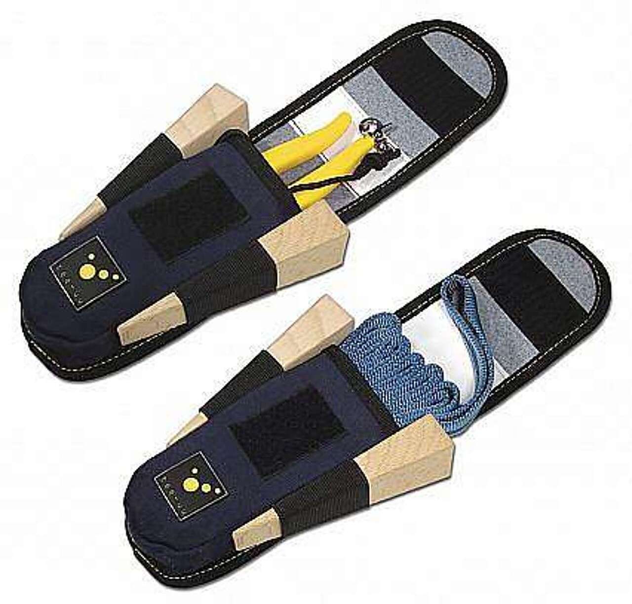 Fondina sottile per l'alloggio di forbici di soccorso, coltelli, nastri di marcatura porte, imbracature di emergenza. Completa di fasce elastiche laterali per l'alloggio di cunei multiuso.
